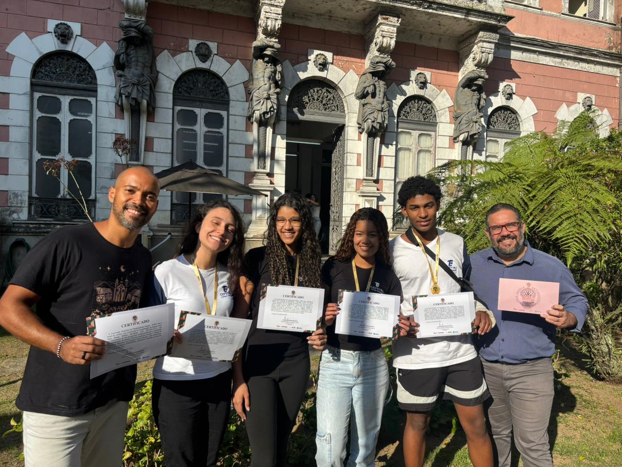 Formada pelos alunos Heloísa Costa, Iasmym Maciel, João Gabriel Santos e Nathalie Guimarães, atualmente no 3º ano do ensino médio integrado ao técnico em Telecomunicações, a equipe participou de quatro fases da olimpíada, que envolviam desde palestras e workshops até provas on-line. O professor Renan Ribeiro, coordenador do Núcleo de Estudos Afro-Brasileiros e Indígenas (Neabi) do Cefet/RJ Petrópolis, orientou a equipe durante a competição.