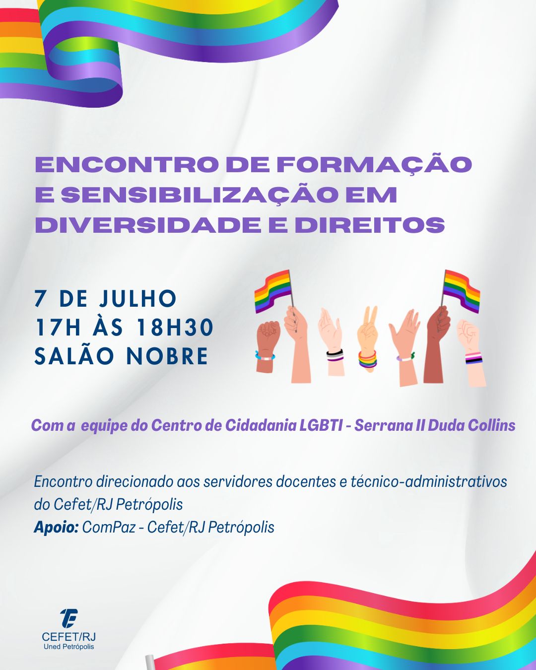 O Cefet/RJ Petrópolis realizará no dia 7 de julho, das 17h às 18h30, o “Encontro de Formação e Sensibilização em Diversidade e Direitos”. A atividade, que será conduzida pela...