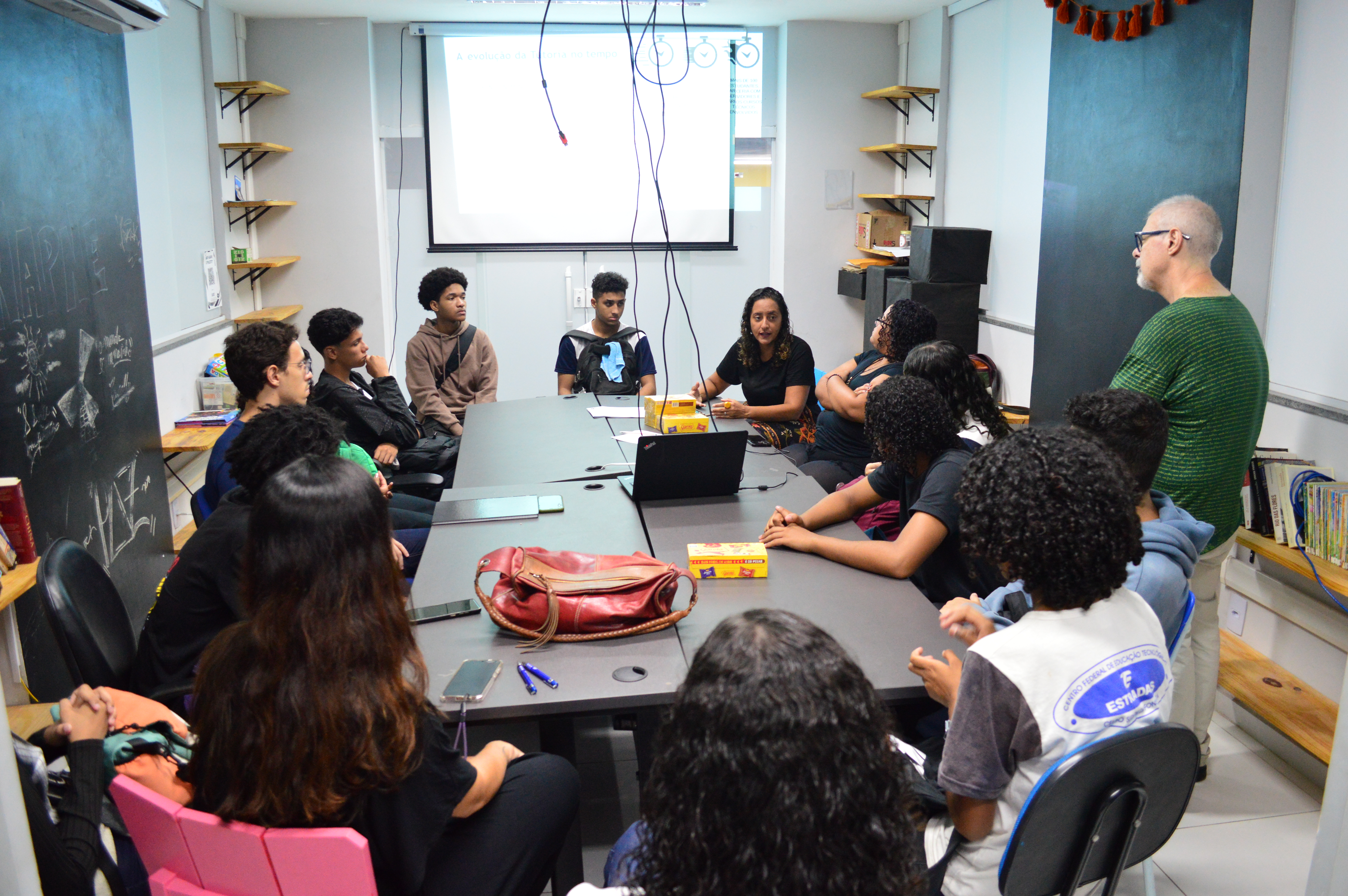 Auditório 1 lotado com calouros do ensino médio/técnico vindos de diversos bairros do Rio de Janeiro e cidades do entorno