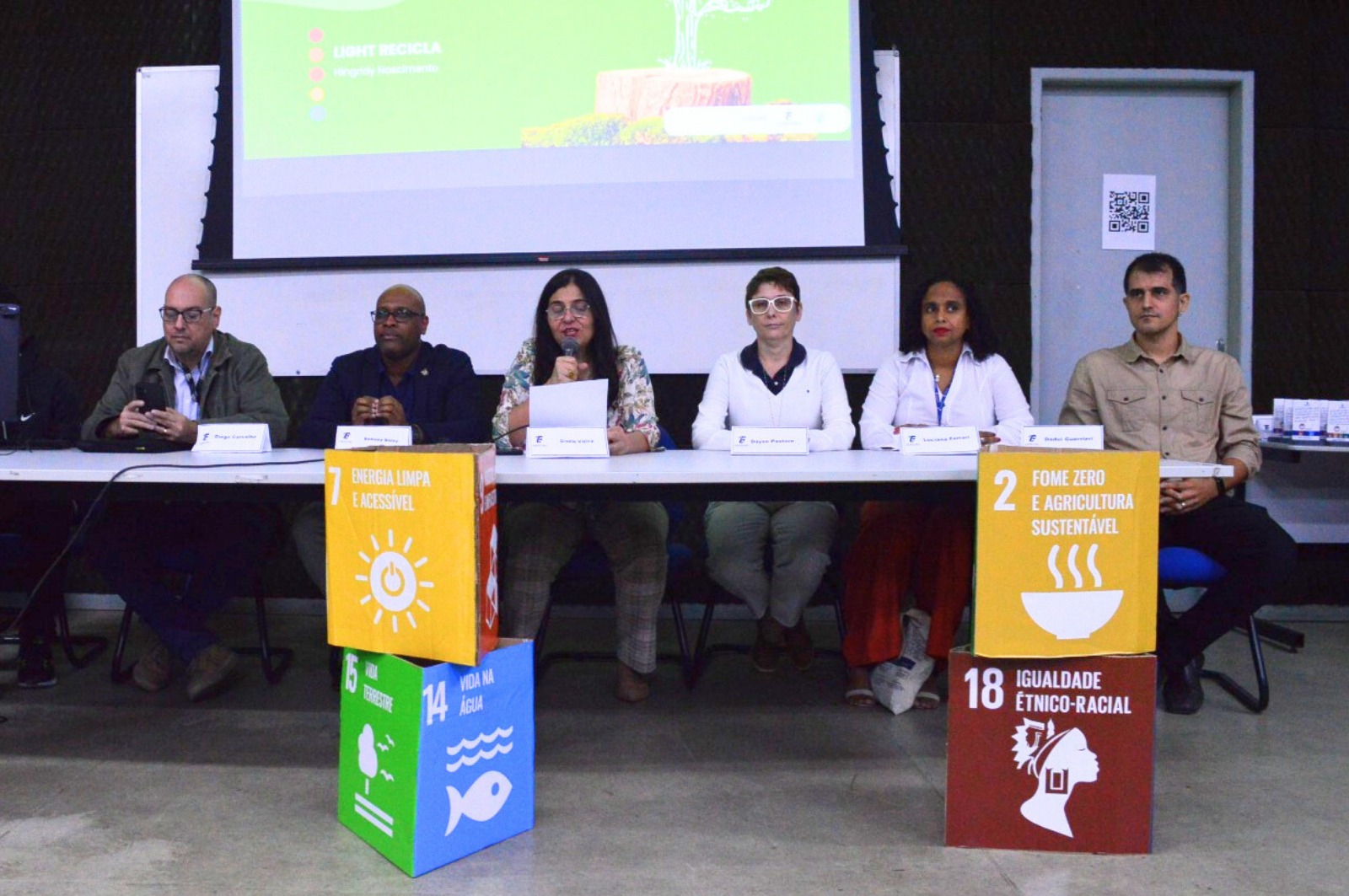 No período da tarde, foram realizadas diversas palestras no Auditório 5, que abordaram a importância da reciclagem de lixo, da gestão de resíduos orgânicos e do Selo ODS Educação – certificação concedida a instituições de ensino que promovem ações alinhadas à Agenda 2030 da ONU. O evento também teve palestras sobre ações do Cefet/RJ no combate ao racismo e no atendimento às pessoas com deficiência. A vice-diretora, Gisele Vieira, participou da mesa de abertura e destacou o papel da instituição na construção de um futuro mais justo e sustentável.