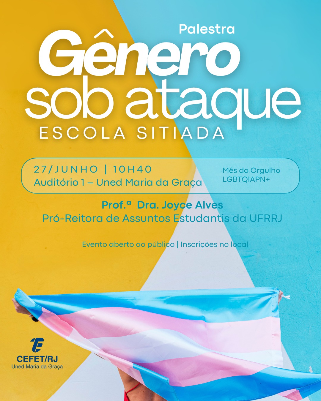 O Núcleo de Estudos Afro-Brasileiros e Indígenas (NEABI) do Cefet/RJ Uned Maria da Graça promove, na próxima sexta-feira (27/6), às 10h40, a palestra “Gênero sob ataque: escola sitiada”, com a professora doutora Joyce Alves, pró-reitora de Assuntos Estudantis da Universidade Federal Rural do Rio de Janeiro (UFRRJ). O evento será realizado no Auditório 1 da unidade e é aberto a estudantes, servidores e visitantes externos.