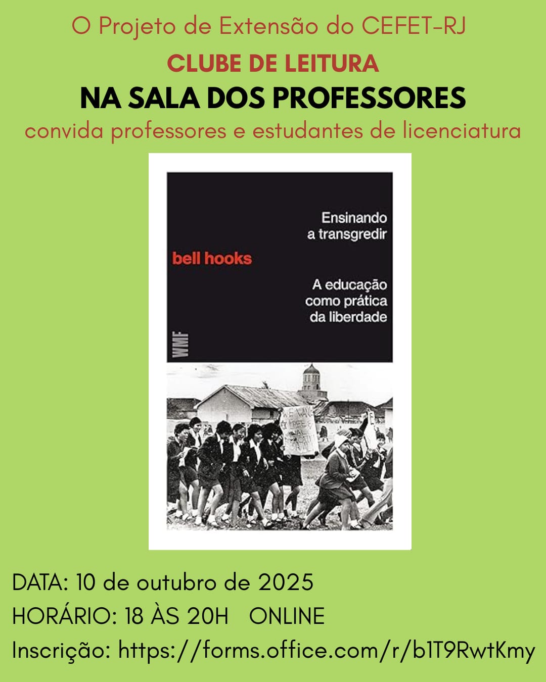 O Projeto de Extensão, do Cefet/RJ, Clube de leitura: na sala dos professores, coordenado pela professora Alessandra Magalhães, convida professores, professoras e estudantes de...