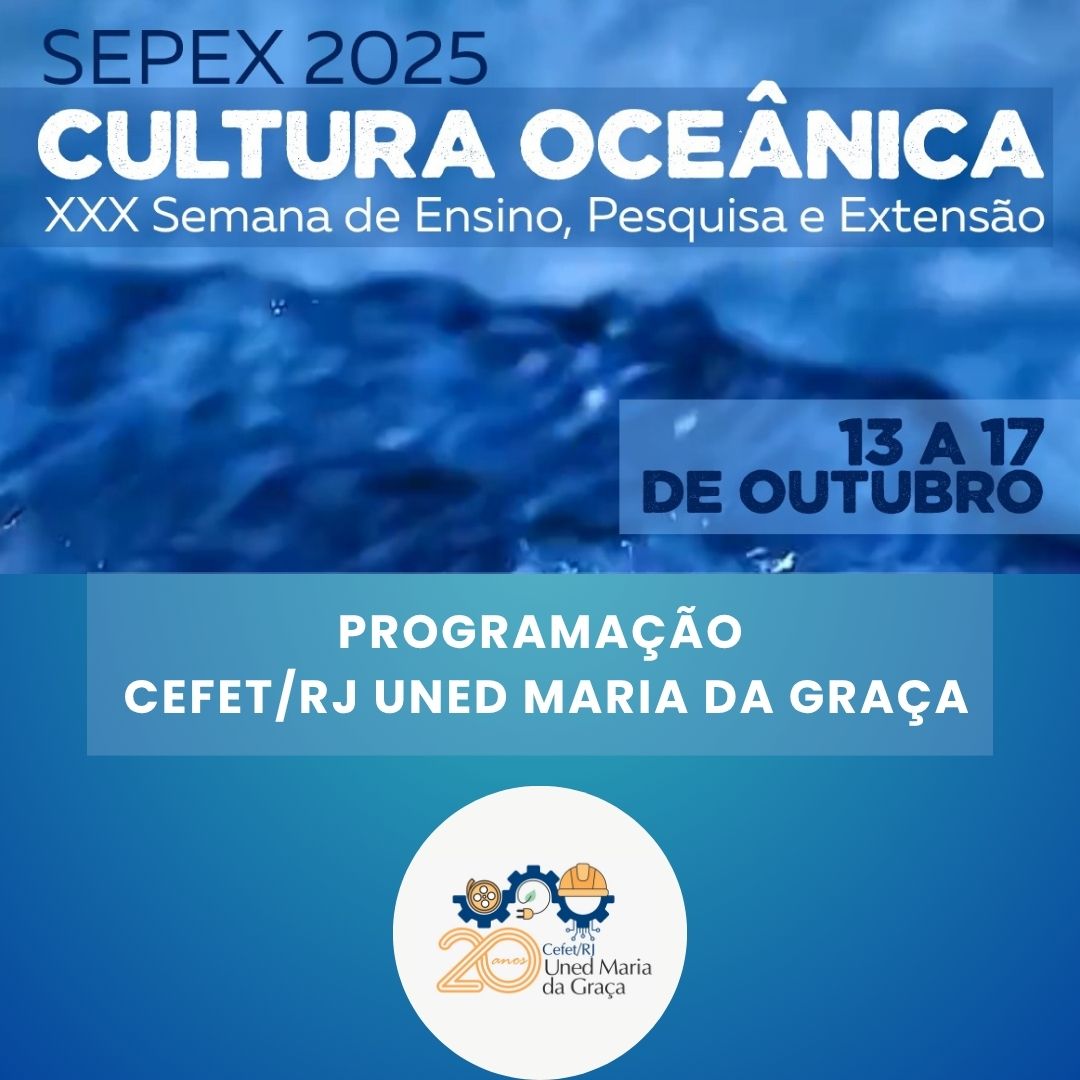 A Sepex acontecerá entre os dias 13 e 17 de outubro em todas as unidades do Cefet/RJ e abordará a “Cultura Oceânica”, acompanhando o tema da Semana Nacional de Ciência e Tecnologia...