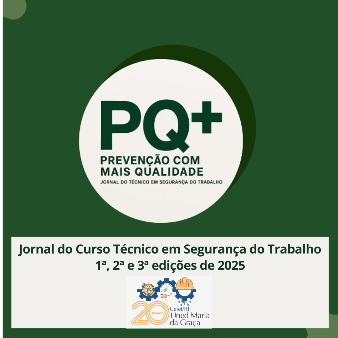 Saíram as edições de junho, setembro e outubro/2025 do Jornal PQ+, Prevenção com Mais Qualidade, do curso Técnico em Segurança do Trabalho da UnED Maria da Graça. Acesse abaixo...