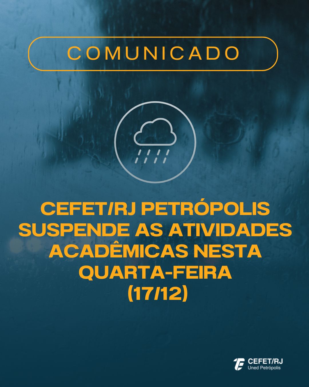 Em razão das fortes chuvas que atingem a cidade de Petrópolis na manhã desta quarta-feira, 17 de dezembro, a direção do Cefet/RJ Petrópolis decidiu suspender as atividades acadêmicas...