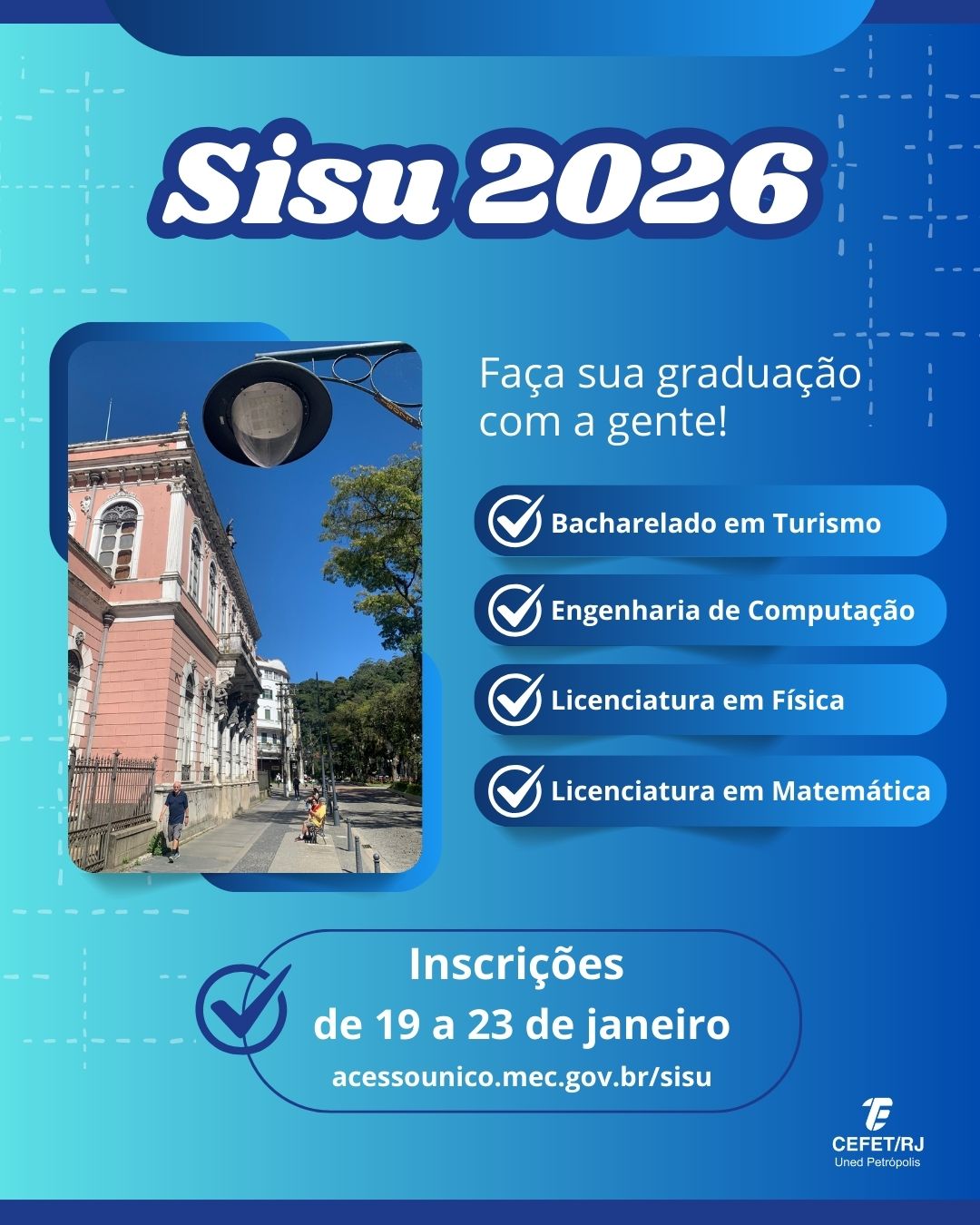 O Cefet/RJ divulgou o edital nº 01/2026, referente ao processo seletivo dos cursos de graduação pelo Sistema de Seleção Unificada (Sisu). Ao todo, a unidade Petrópolis disponibiliza...