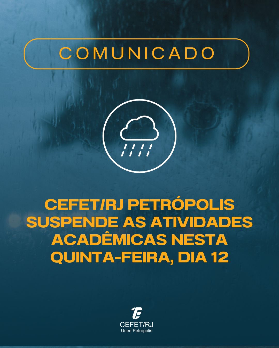 Seguindo orientação da Prefeitura de Petrópolis, o Cefet/RJ Petrópolis decidiu suspender as atividades acadêmicas nesta quinta-feira, 12 de março. Os servidores deverão atuar em...