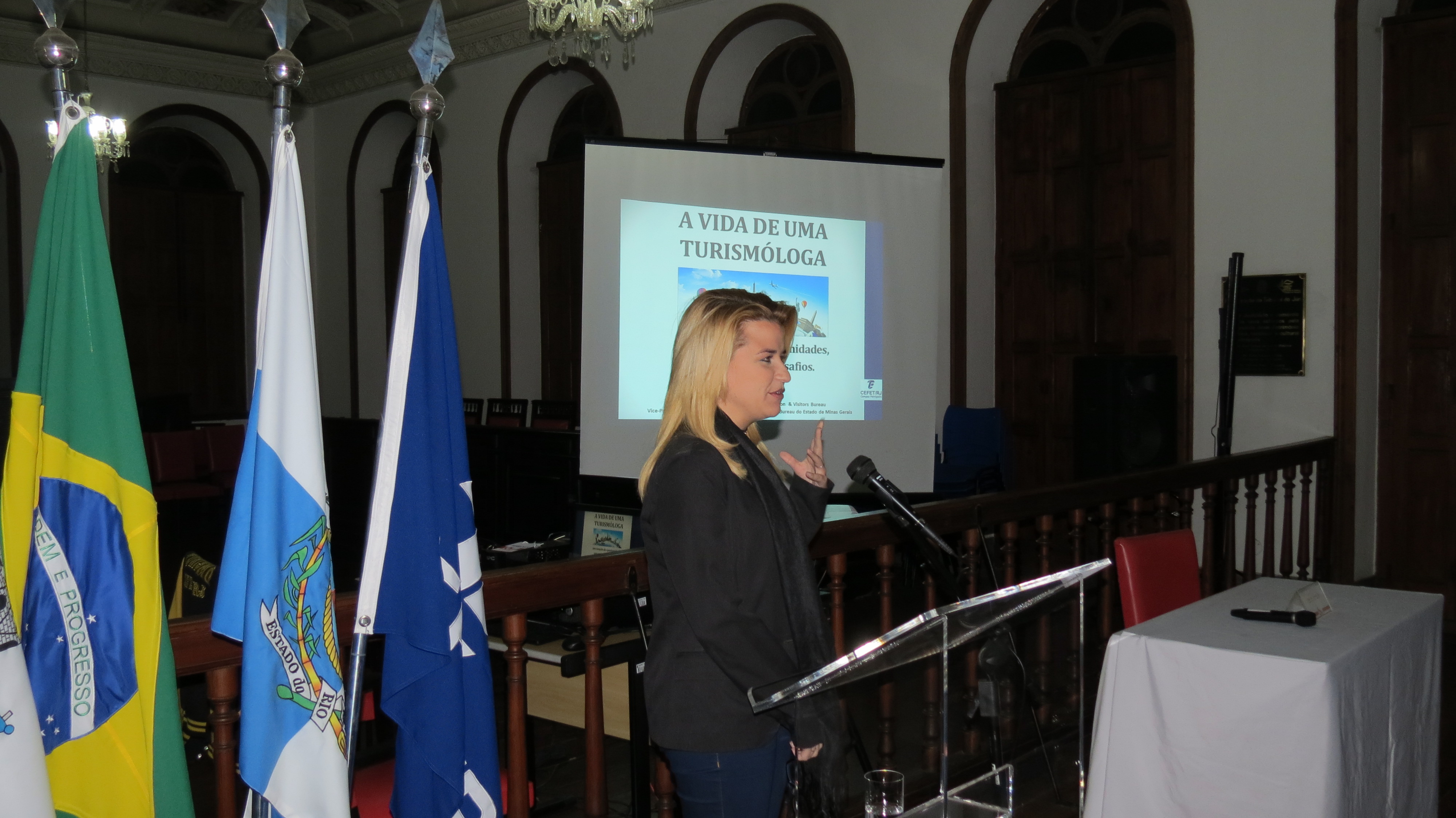 A convidada Thais de Oliveira Lima ministra a conferência “A vida de uma turismóloga: um mundo de oportunidades, um universo de desafios”.