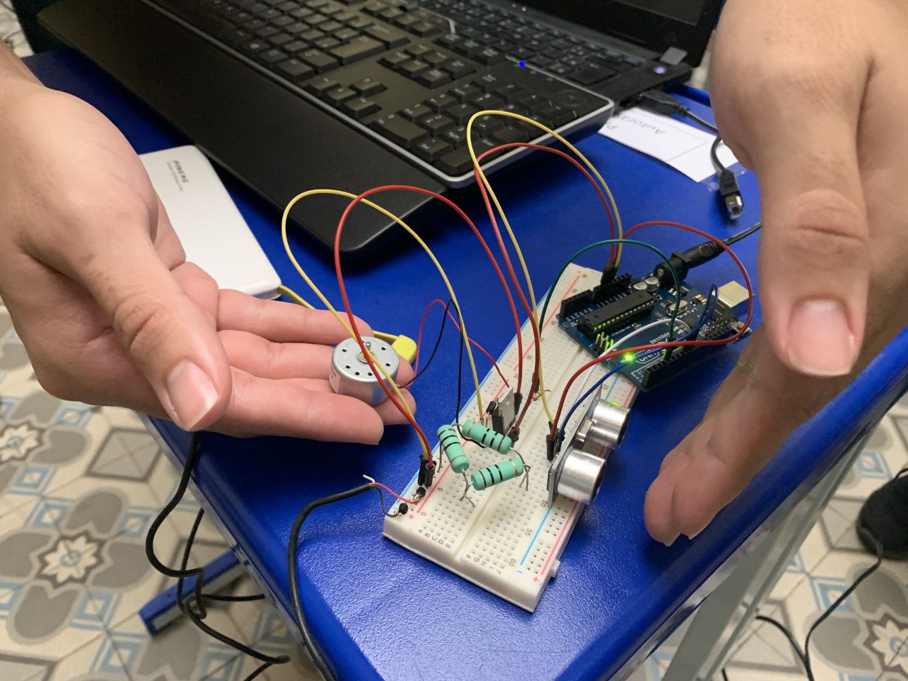 Sensor de obstáculos desenvolvido por Juliana e Stefany pode detectar objetos de 10cm a 7m de distância.