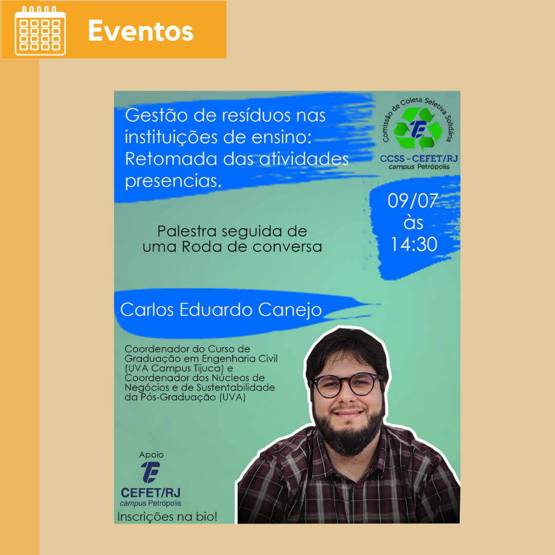 O projeto de extensão Cefet/RJ Sustentável: ações da Comissão de Coleta Seletiva Solidária (CCSS) do campus Petrópolis promoverá na próxima sexta-feira, dia 9 de julho, a...