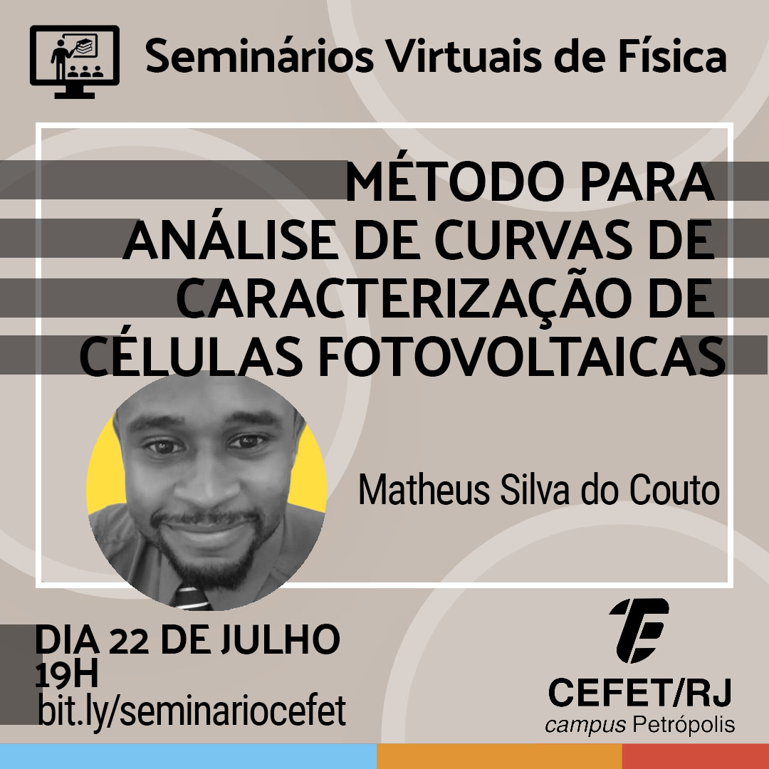 A próxima apresentação do projeto Seminários Virtuais será realizada na quarta-feira, dia 22 de julho, e terá como tema o “Método para análise de curvas de caracterização de...