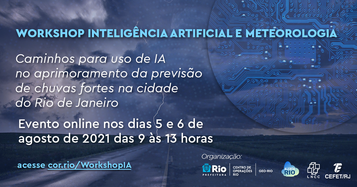 Estão abertas as inscrições para o “Workshop Inteligência Artificial e Meteorologia – caminhos para uso de I.A. no aprimoramento da previsão de chuvas fortes na cidade do Rio de Janeiro”. O evento será realizado on-line pela plataforma Zoom, nos dias 5 e 6 de agosto, das 9h às 13h. A iniciativa é direcionada a estudantes e profissionais da área e haverá entrega de certificado aos participantes, emitido pela equipe do Centro de Operações Rio.