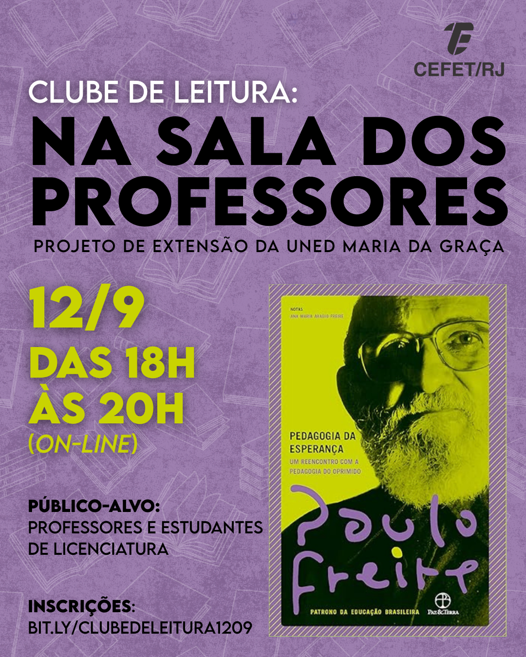 Este primeiro encontro será sobre o livro Pedagogia da Esperança, de Paulo Freire, que trata da educação como um grande desafio dos tempos atuais e de como o diálogo pode multiplicar potências. O objetivo do clube, coordenado pela professora Alessandra Magalhães, é ser um espaço de trocas e de formação crítica e afetiva.