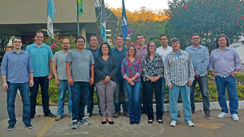 O corpo docente do bacharelado, acompanhado da diretora do campus Nova Friburgo, Bianca Tempone (primeira da esquerda para a direita)