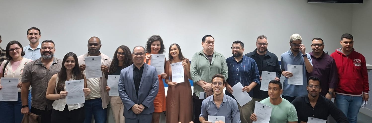 Em cerimônia realizada nesta quinta-feira (22), no Auditório 2 da Unidade Maracanã, 17 aprovados no último concurso de técnicos-administrativos do Cefet/RJ assinaram o termo de posse e passaram a integrar o quadro de servidores da instituição. O evento contou com a presença do diretor-geral do Cefet/RJ, Mauricio Motta, da diretora de Ensino, Dayse Pastore, além de outros gestores e de familiares dos novos servidores.