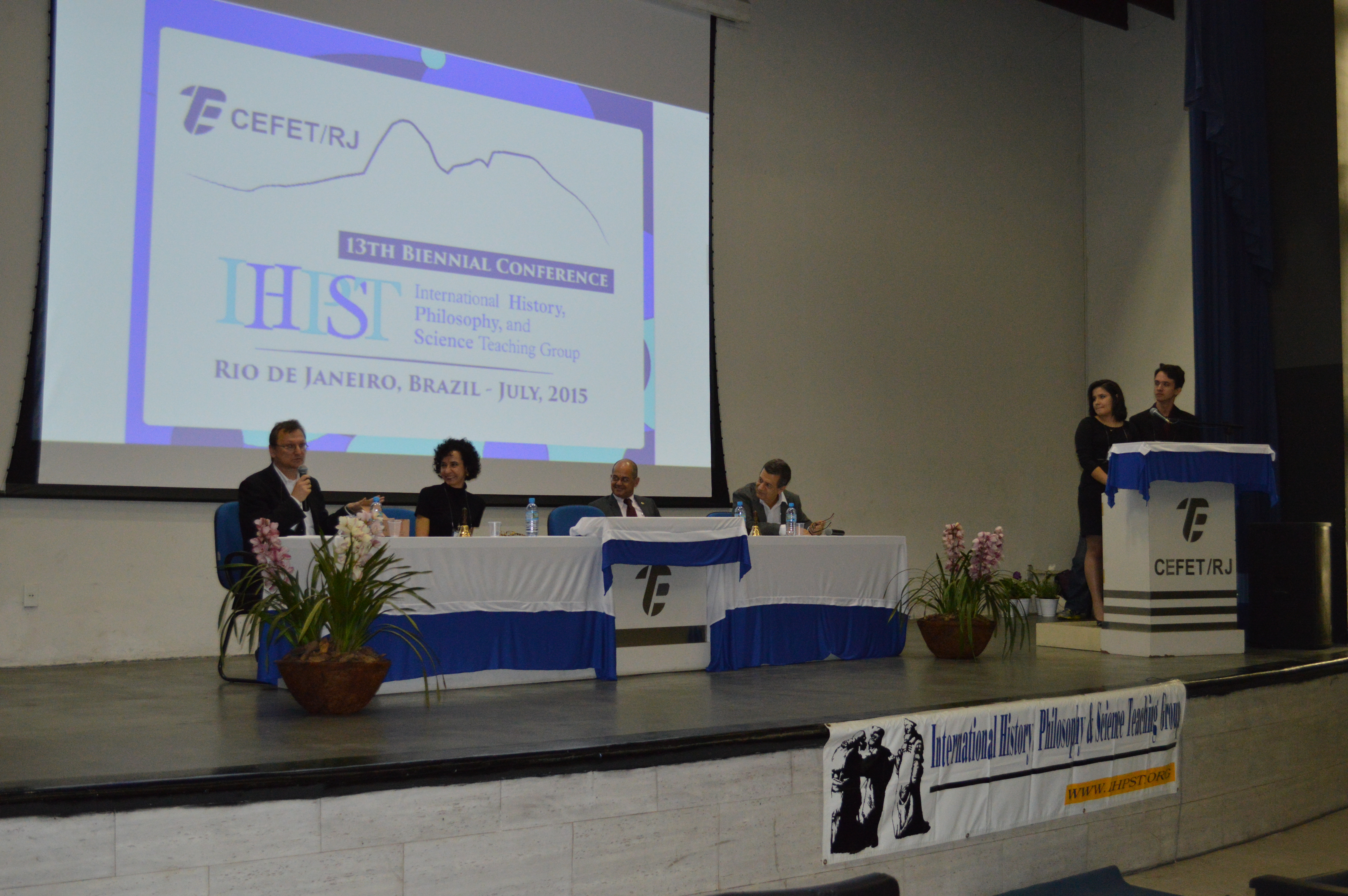 O evento teve início hoje, quando foi realizado um workshop sobre “História e Filosofia da Ciência em sala de aula”. Estiveram presentes quatro pesquisadores: Peter Heering (Europa-Universität Flensburg); Agustín Aduriz-Bravo (Universidad de Buenos Aires); Igal Galili (The Hebrew University of Jerusalem); Don Metz (University of Winnipeg). É a primeira vez que a “IHPST Conference” começa com uma pré-conferência. “Essa foi uma ideia que surgiu aqui no Cefet/RJ e é o único momento em que haverá tradução simultânea para o português. Convidamos quatro pesquisadores que são as referências bibliográficas que nossos alunos estão lendo”, informa o professor Marco Braga. Foram abertas, nesse workshop, 50 vagas para estudantes brasileiros de pós-graduação. Nos demais dias da “13th Biennial IHPST Conference”, os trabalhos serão apresentados apenas em língua inglesa.