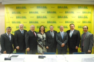Da esquerda para a direita: os reitores Reinaldo Centoducatte (Ufes), Zaki Akel Sobrinho (UFPR), Luiz Pedro Jutuca (UNIRIO), Ana Maria Soares (UFRRJ), o diretor-geral Márcio Silva Basílio (Cefet/MG), o diretor-geral Carlos Henrique Alves (Cefet/RJ), o reitor Paulo Márcio de Faria e Silva (Unifal) e o vice-diretor Mauricio Motta (Cefet/RJ).
