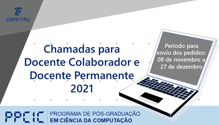 De 8 de novembro a 27 de dezembro, está aberto o período de inscrições para o credenciamento de docentes do Cefet/RJ no Programa de Pós-Graduação em Ciência da Computação (PPCIC). Os processos seletivos irão escolher até dois professores doutores da instituição para atuarem como colaboradores e até um professor para integrar o quadro permanente do programa. De acordo com as duas chamadas públicas, o início da atuação está previsto para 17 de fevereiro de 2022.