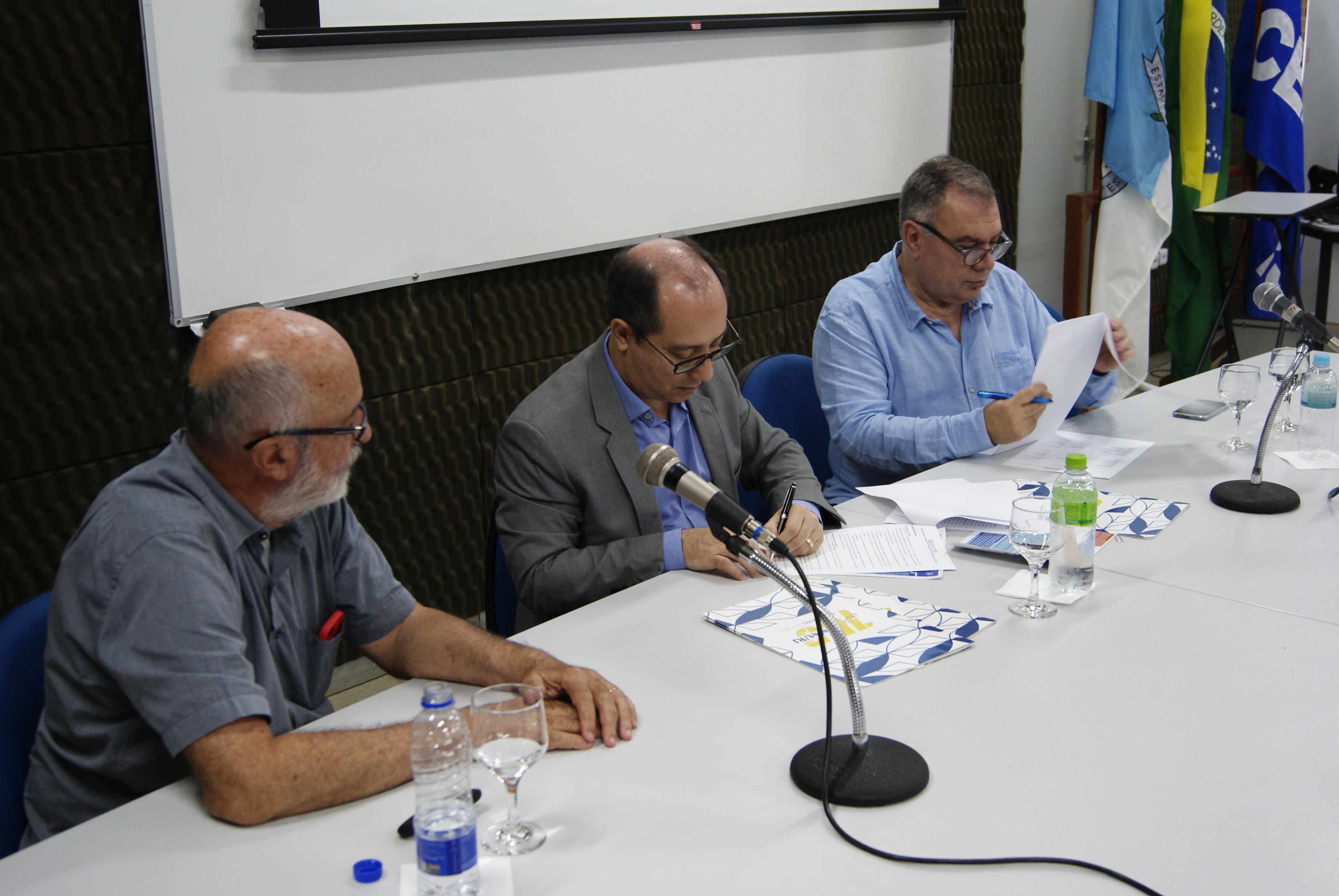 Da esq. para dir., o professor José Cláudio Teixeira, o diretor-geral do Cefet/RJ, Mauricio Motta, e o representante da PIPELINEBRAZIL, Marcelino Gomes, participam da assinatura do acordo de cooperação técnica.