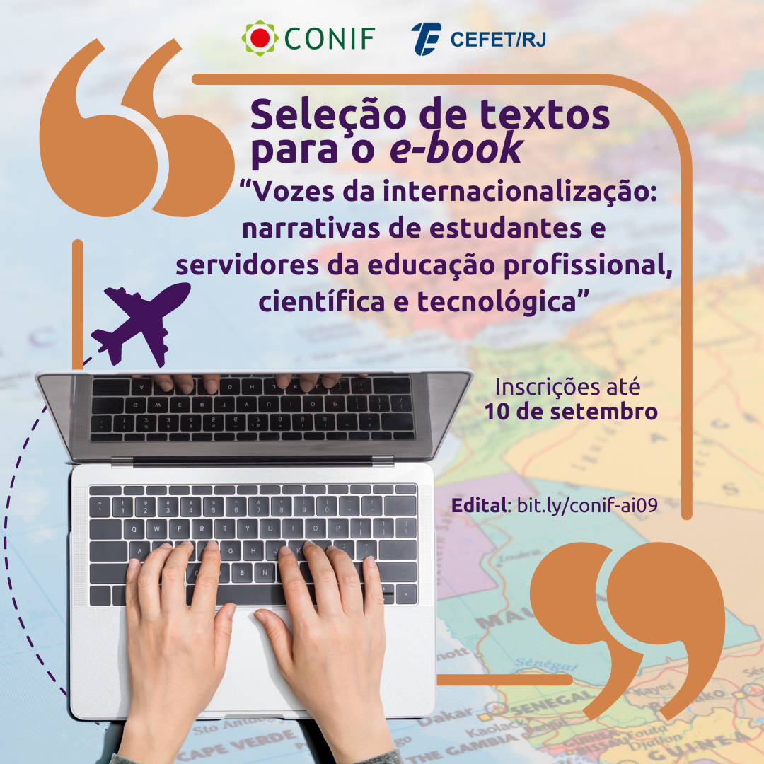 Estão abertas, até 10 de setembro, as inscrições para a chamada pública que selecionará textos para a publicação digital “Vozes da internacionalização: narrativas de estudantes e servidores da educação profissional, científica e tecnológica”. Ao todo, serão escolhidos 82 textos elaborados por estudantes, ex-alunos e servidores da rede federal. Para concorrer, é preciso ter participado de ações de internacionalização entre os anos de 2009 e 2023.